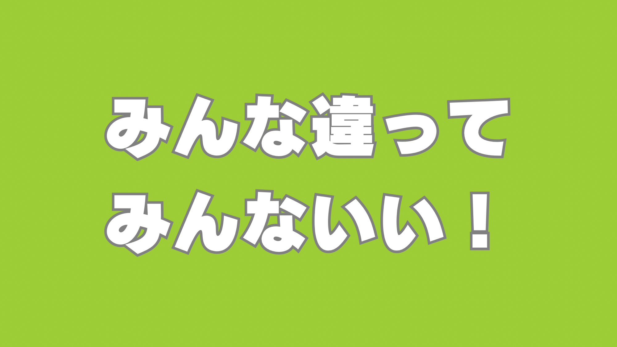 全員違って良いと思ってる。みんな同じだとつまらない。欠点がなければ、助けを必要としなくなる。助け合えないと人間関係を築けなくなるから。