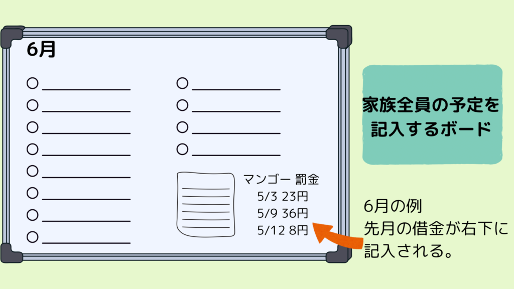 翌朝、母が「あんた昨日罰金払ってないでしょう?」と言っても「ああ、ごめん!忘れてた!」と答え、母が朝バタバタしてる事をいいことに、「罰金箱にお金入れとくわ!」と罰金箱のお金をジャラジャラさせて音を出して、実際は払わないこともあった。