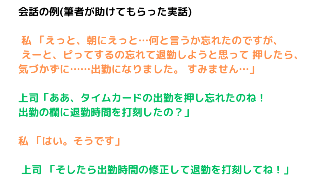 ・ミスっても謝って助けてもらう(ミスしてカバーしてもらうのは当然ではないので、本気で謝る)